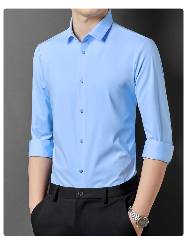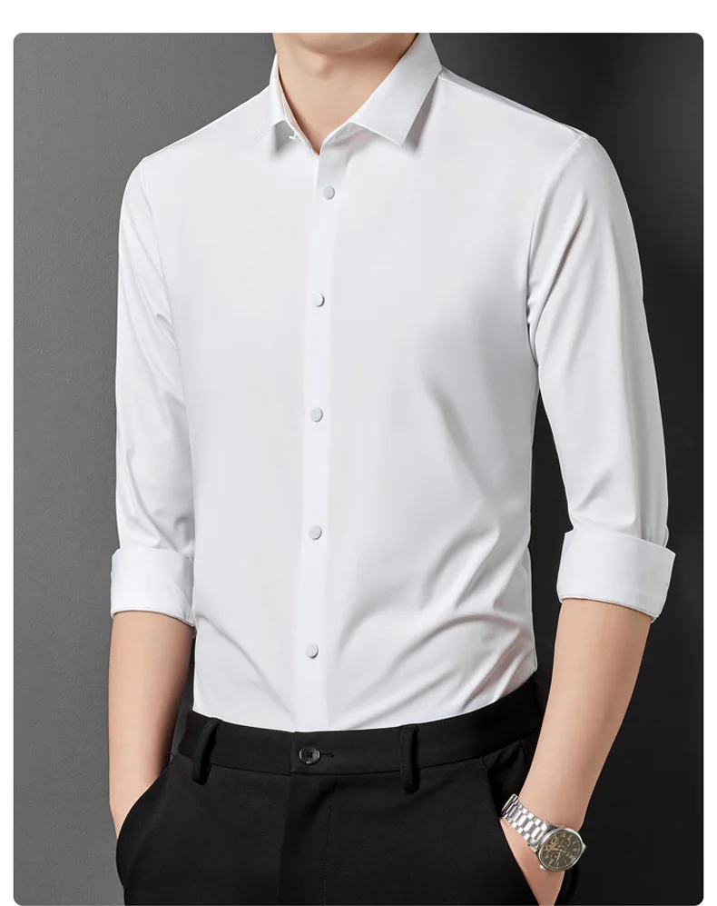 Camisa de manga anti-amasso, comprida masculina, monocromática, elastano, High Stretch!