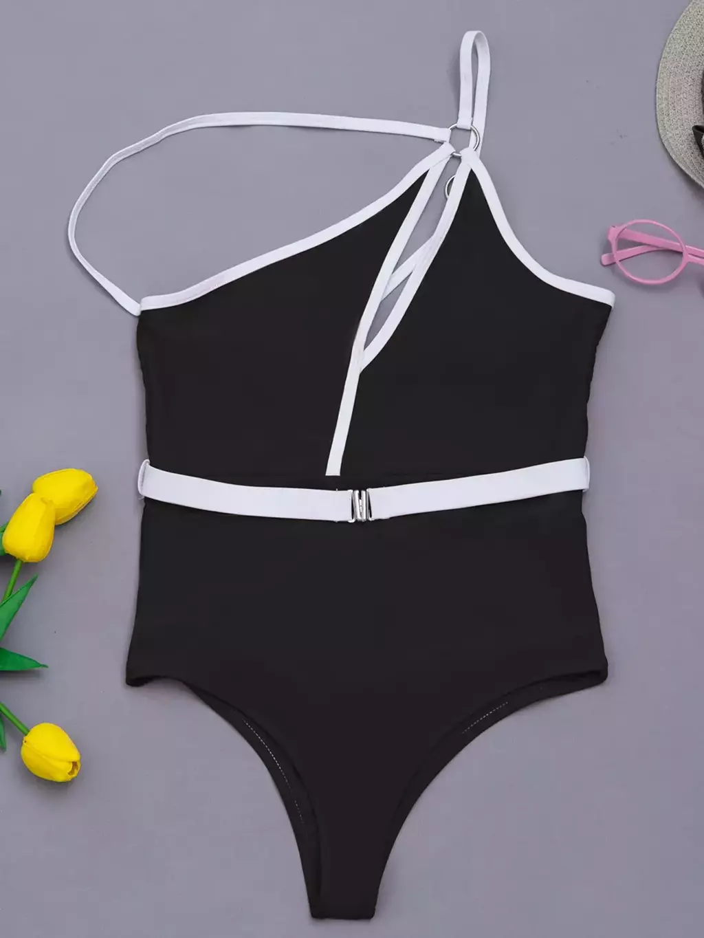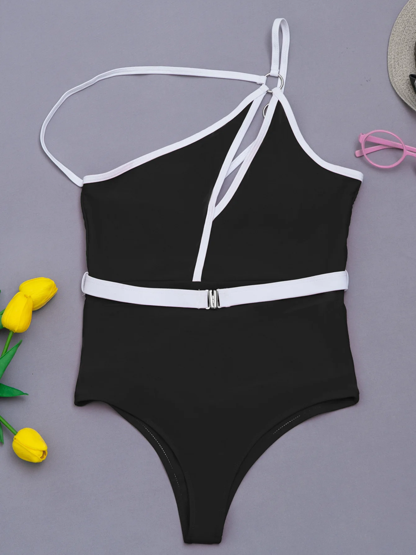 Maiô de peça única, de cintura alta, sexy com cinto embutido.