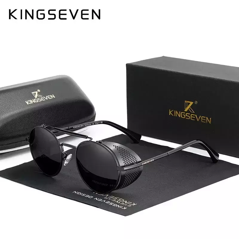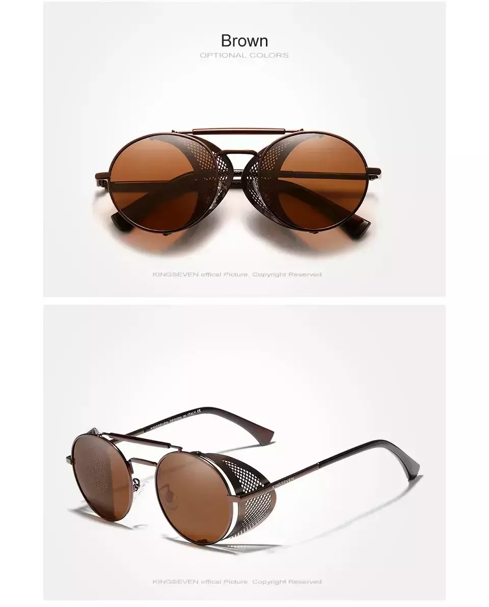 Óculos unissex clássicos de sol polarizados Steampunk: armação metálica, redonda com estilo vintage.
